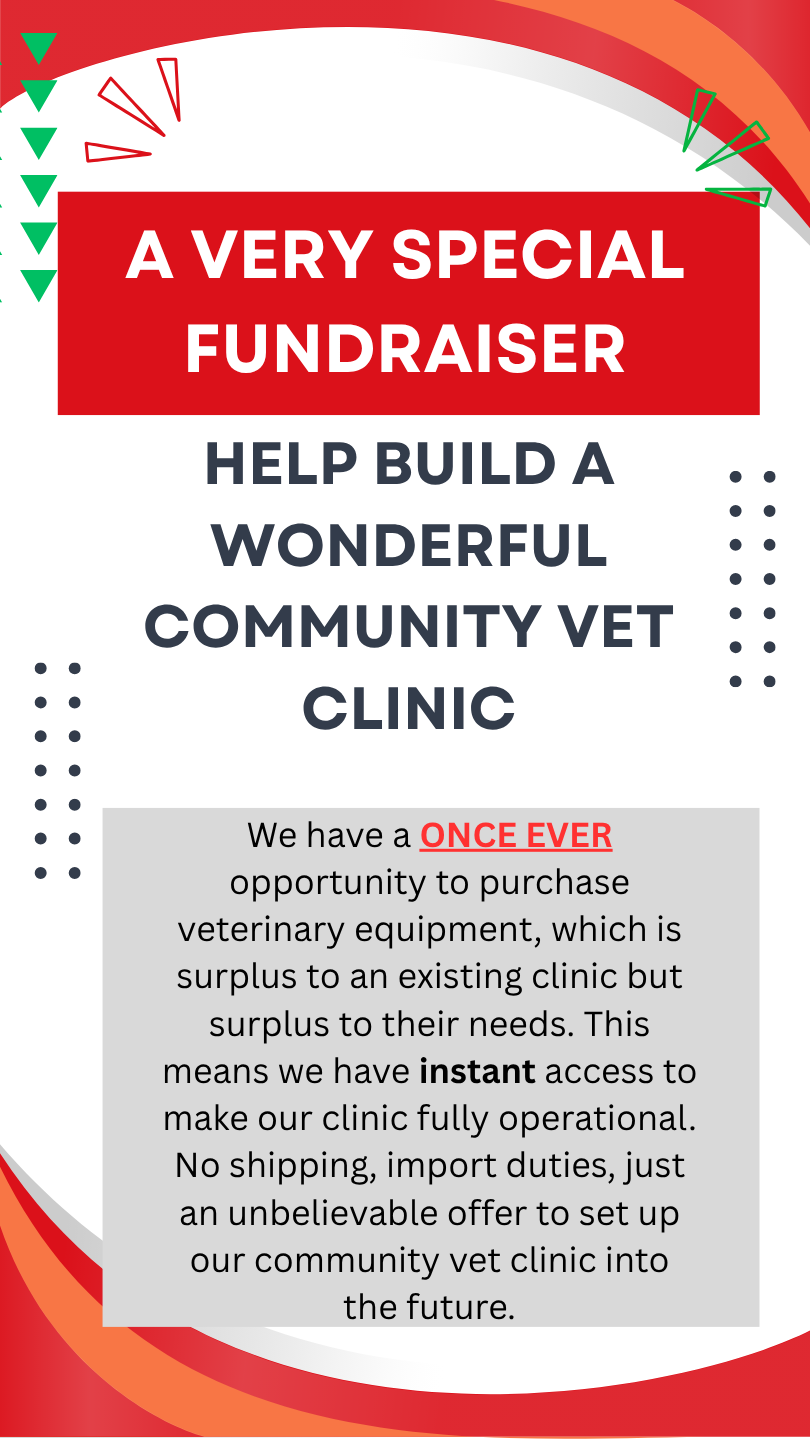 Now, we have a rare opportunity: a local private clinic is offering surplus key veterinary equipment at a fraction of what it would normally cost—but only for a short time. If we can raise $10,000 quickly, we can secure some amazing equipment.